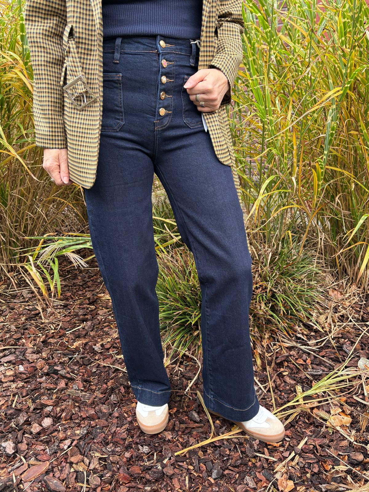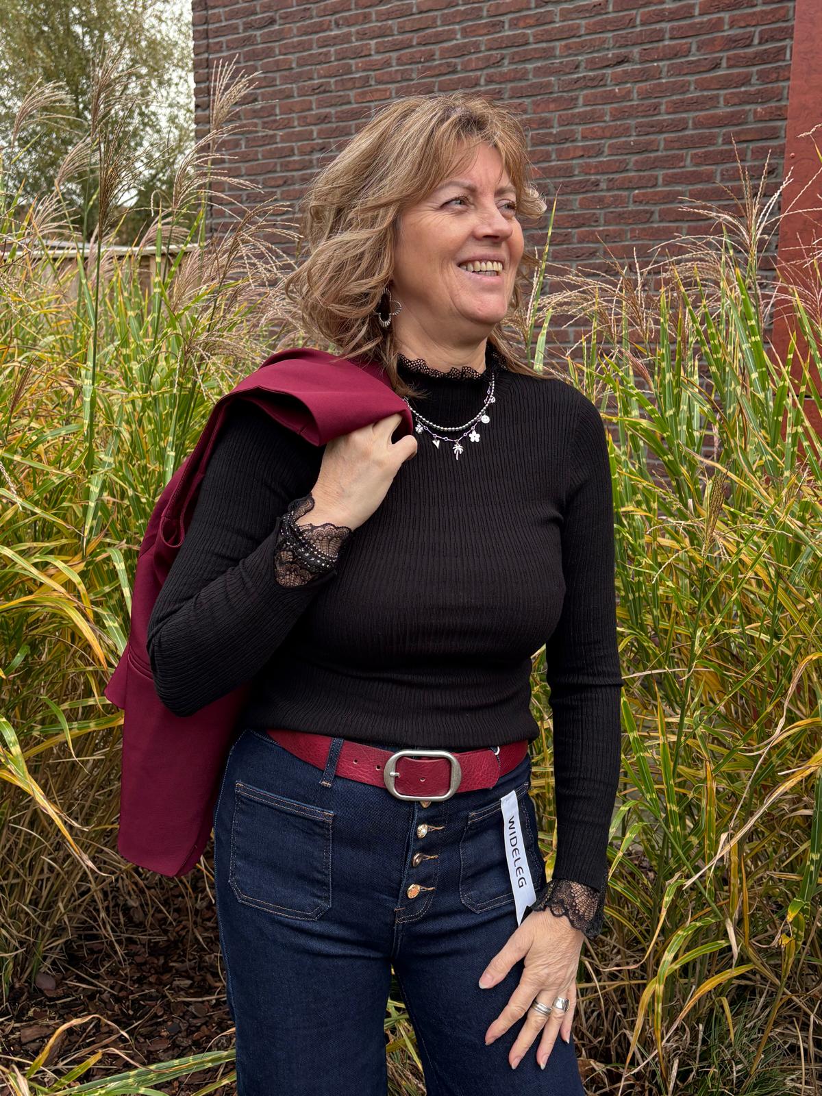 Heerlijke wide leg jeans met veel stretch heeft leuke zakjes aan de voorkant.